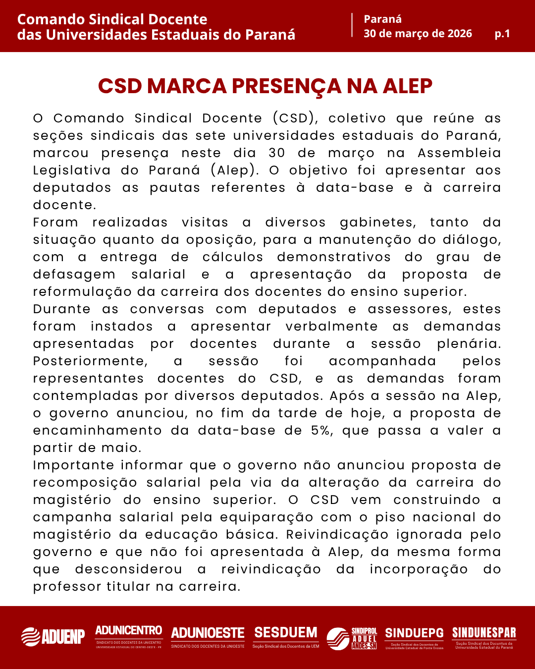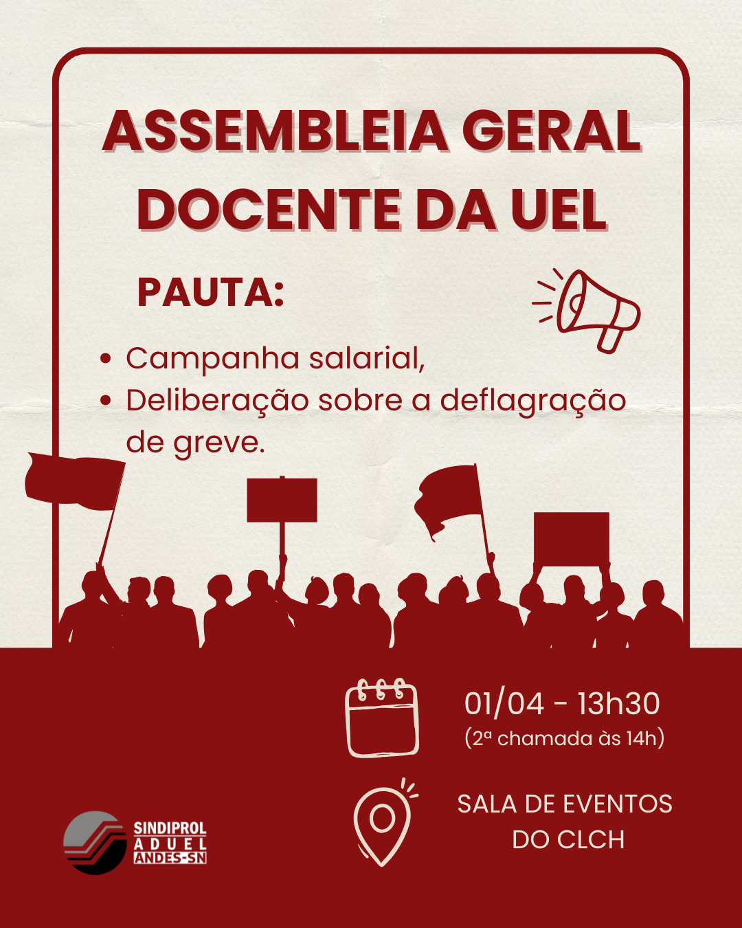 - Assembleia Docente da UEL aprova manutenção do estado de greve e assembleia permanente com nova reunião no dia 01/04