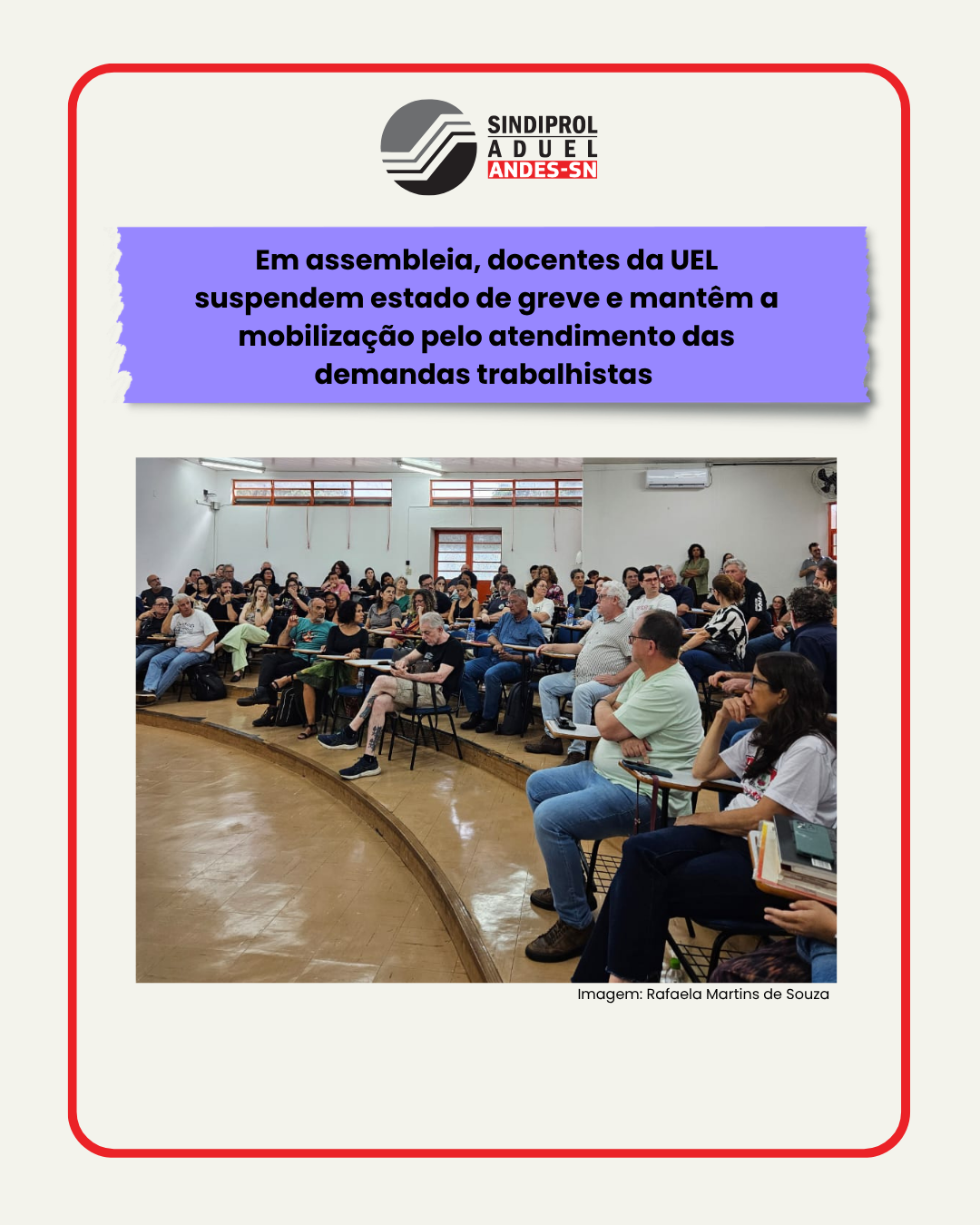 - Em assembleia, docentes da UEL suspendem estado de greve e mantêm a mobilização pelo atendimento das demandas trabalhistas
