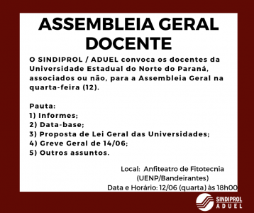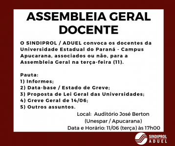 Por isso, o Sindiprol/Aduel não só rejeita a proposta do governo e a entende como um ataque às universidades, como também exige que o quadro de docentes e servidores técnico-administrativos seja preenchido em sua totalidade, em conformidade com o que já está na Lei nº 14.269, de 22/12/2003, e que o custeio demandado pelas universidades para seu pleno funcionamento seja repassado integralmente pelo estado.