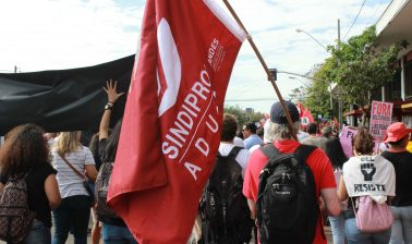 A concentração na cidade começou às 9h e ficou na Avenida Leste-Oeste, em frente ao Terminal, até perto das 12h. Durante as horas que precederam a saída em marcha, que terminou no Calçadão, o microfone foi aberto para a fala das entidades e dos sindicatos. Pelo Sindiprol/Aduel, o Diretor de Comunicação Eliel Machado falou sobre a proposta do governo e o ataque ela representa ao direito de se aposentar.