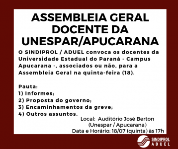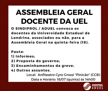 A plenária completa está no Facebook do Sindiprol/Aduel, assim como fotos dos GTs.