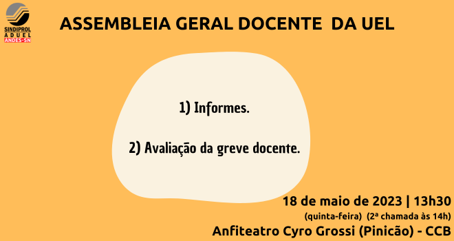 Conforme aprovado na semana passada, quando as e os docentes da UEL deliberaram pela continuidade, ampliação e fortalecimento do movimento grevista, a próxima assembleia da categoria será amanhã (quinta, 18) e terá a seguinte pauta: