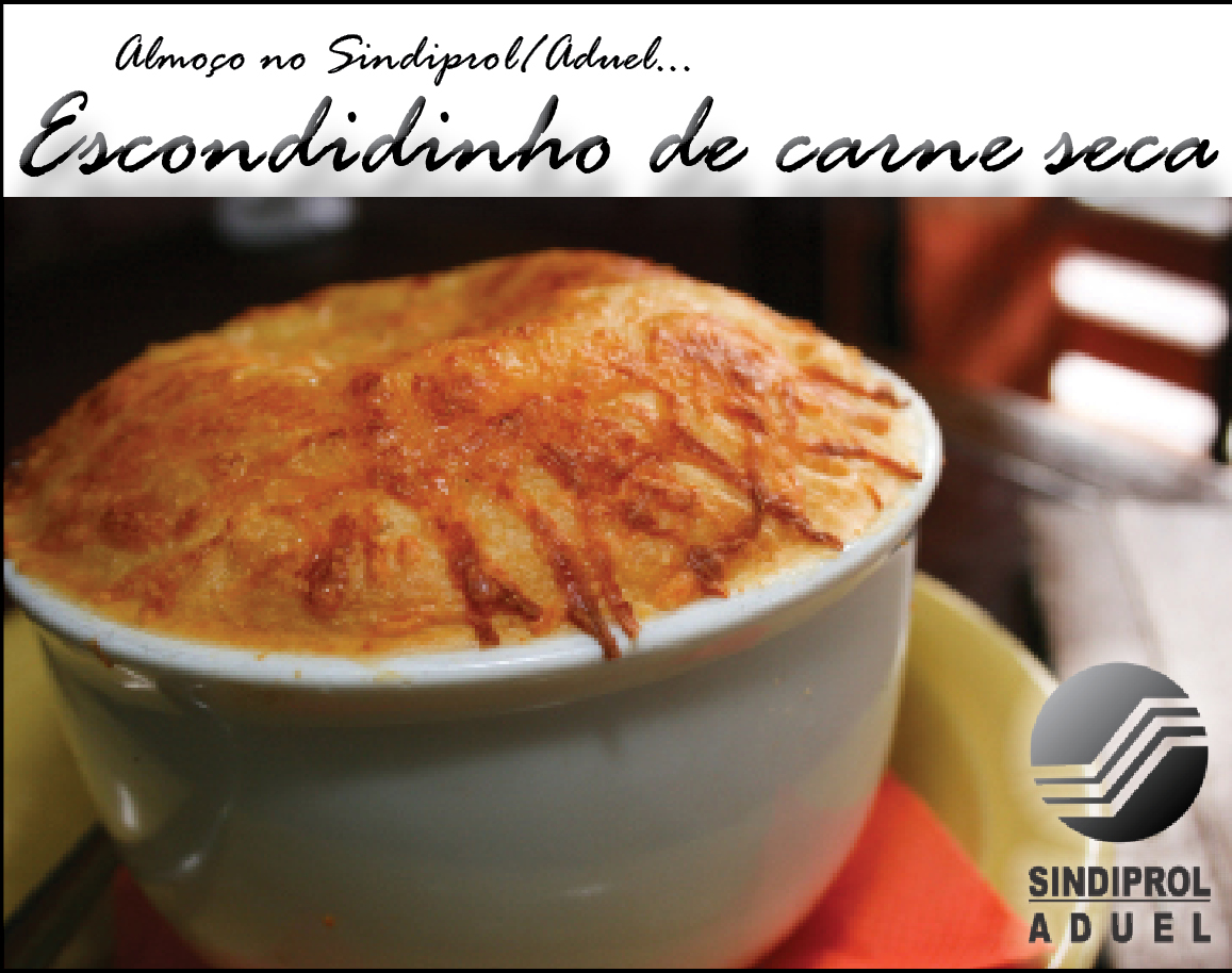 O Sindiprol/Aduel promoverá um almoço no último sábado de março, dia 31, das 12h às 15h. O prato é escondidinho de carne seca, preparado pelo chef Claudio. O preço é R$5 para associados e R$15 para convidados. O almoço é gratuito para professores em estágio probatório. Compareça!