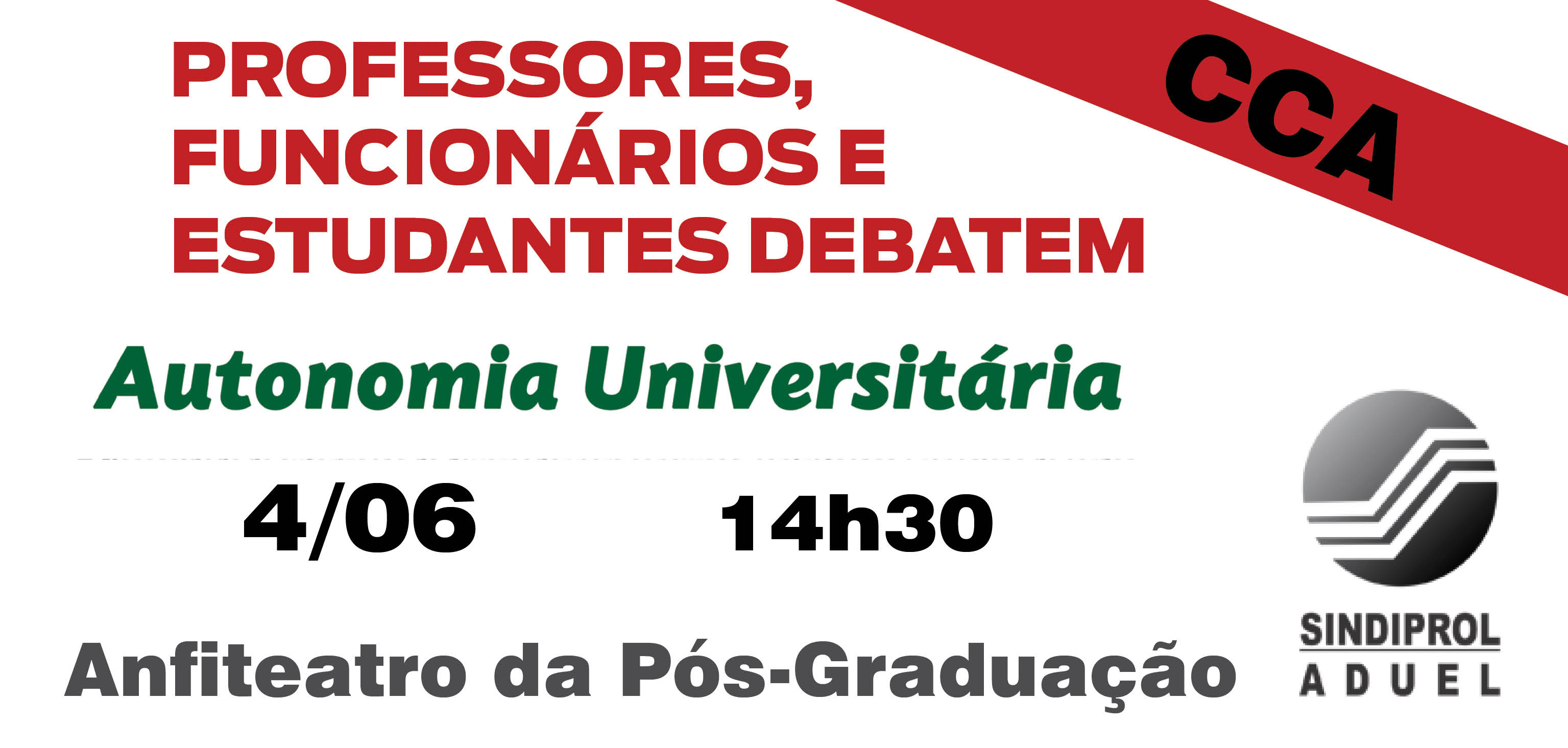 Nesta quarta-feira o Centro de Ciência Agrárias (CCA) também recebe o debate sobre o relatório de Autonomia do Conselho Universitário. Será às 14h30 no Anfiteatro da Pós-Graduação. Clique aqui para ler o relatório completo.