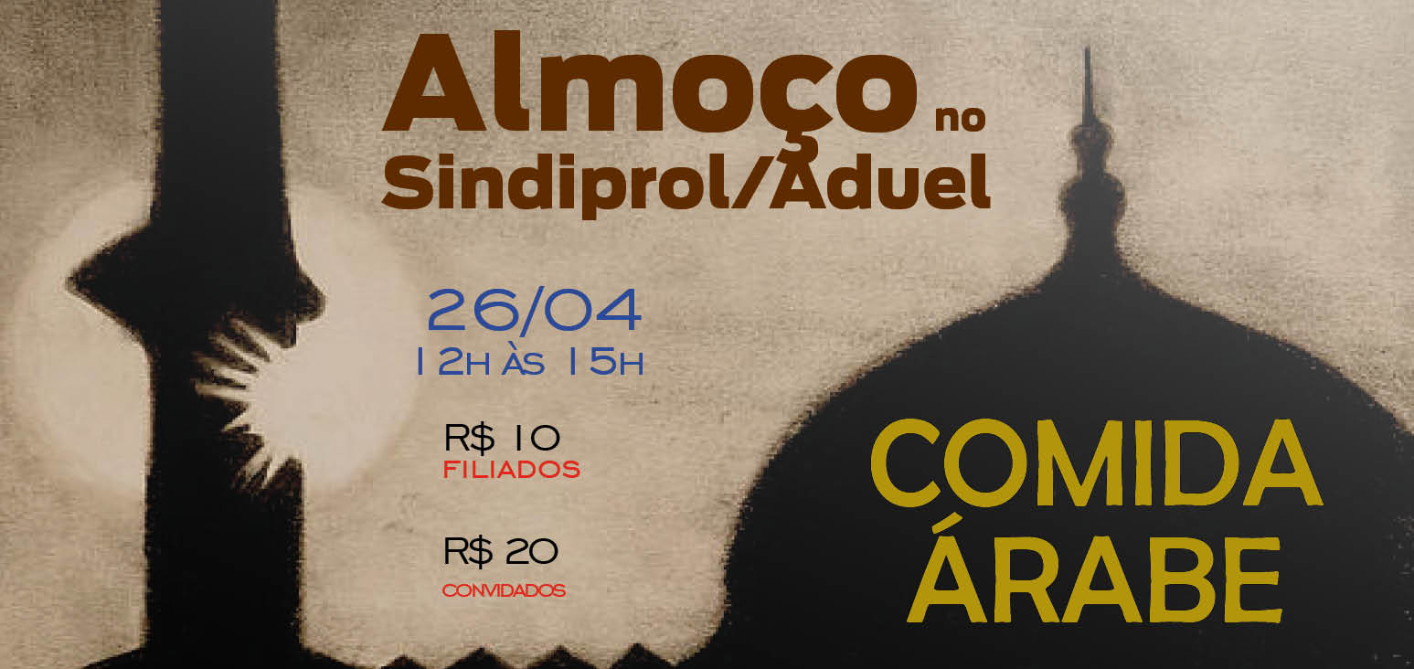 O Sindiprol/Aduel convida todos os docentes para o próximo almoço de confraternização. Será no dia 26 de abril, sábado, das 12h às 15h na sede do Sindicato, que fica na Praça La Salle, 83.