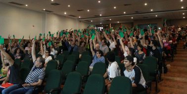 A Assembleia Geral Docente da UEL, realizada na tarde desta terça-feira (2), no Anfiteatro Cyro Grossi (“Pinicão” do CCB), deliberou pela deflagração imediata da Greve da categoria. Pouco antes, servidores técnico-administrativos já haviam deliberado pela aprovação da Greve a partir de segunda-feira (8).