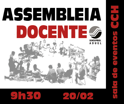 O Sindiprol/Aduel convoca todos os docentes da UEL, UENP e FECEA para a assembleia geral que será realizada na próxima quinta-feira (20) às 9:30h. Será na Sala de Eventos do CCH, no campus da UEL.