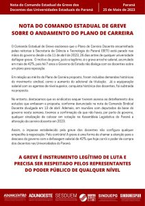 Além da continuidade da greve, das reuniões por centros de estudos da UEL e da próxima assembleia da categoria, foram aprovados outros dois pontos para a sequência da luta pela reposição salarial: