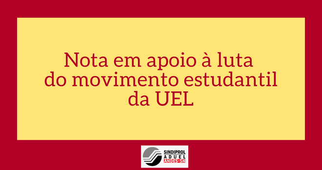 Reconhecendo a justeza de suas reivindicações, o Sindiprol/Aduel se solidariza com as e os estudantes e solicita a colaboração das e dos docentes nessa luta.