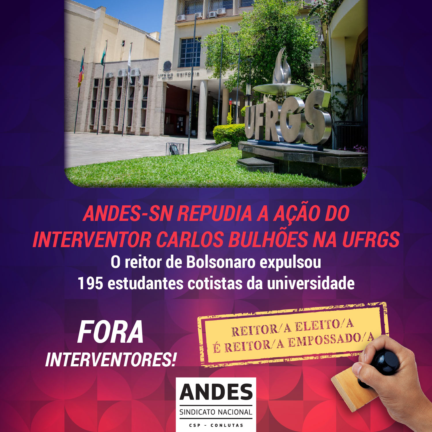 Andes-SN – Nota em repúdio às ações do interventor da UFRGS – 8/06/21 expulsão de alunos cotistas interventor repúdio UFRGS