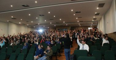 Em Assembleia realizada nesta quarta (26), no “Pinicão” (Anfiteatro Cyro Grossi) do CCB, os Docentes da UEL deliberaram por manter o indicativo de greve enquanto aguardam uma possível proposta financeira do governo estadual até segunda-feira (1) e, então, em nova Assembleia no dia seguinte (terça, 2), às 14h, decidir sobre a deflagração da Greve.